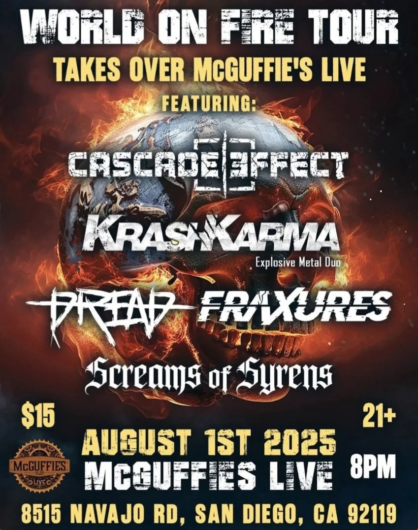 Los Angeles-based metal duo KRASHKARMA is kicking off their blazing “World on Fire Tour” this August, bringing their aggressive, genre-bending sound to over 50 cities across the U.S. and Europe, including a stop in San Diego on August 1st at McGuffie's.