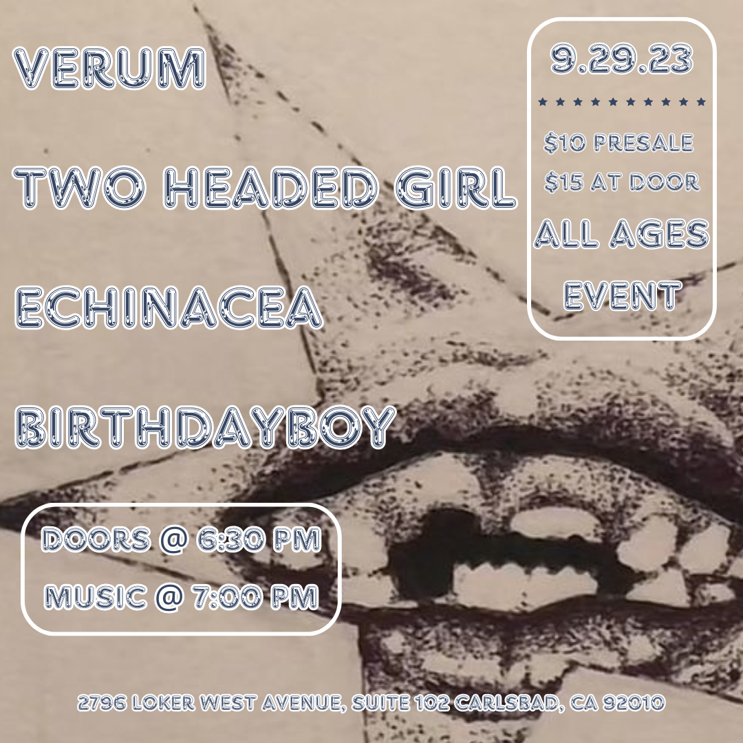 Lineup: Verum, Two Headed Girl, Echinacea, Birthdayboy